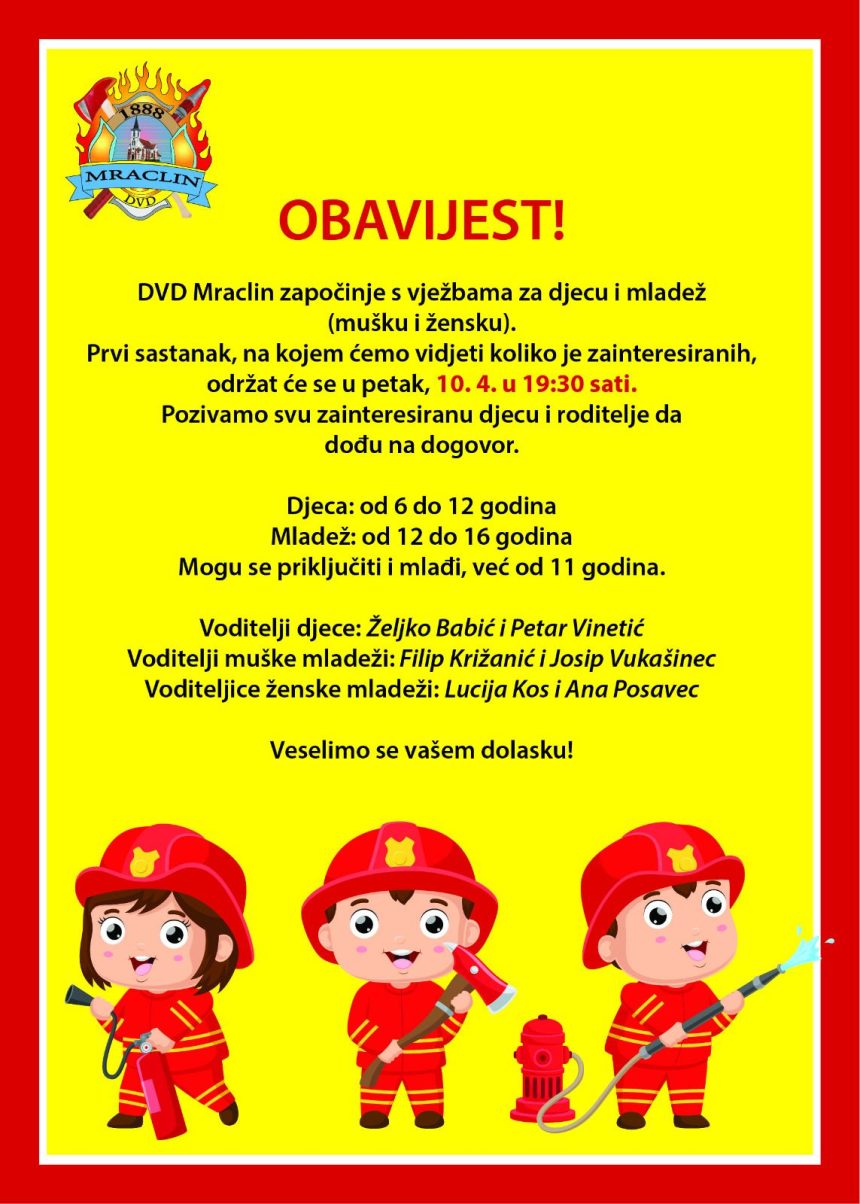 Dobrovoljno vatrogasno društvo Mraclin započinje s organizacijom vježbi za djecu…