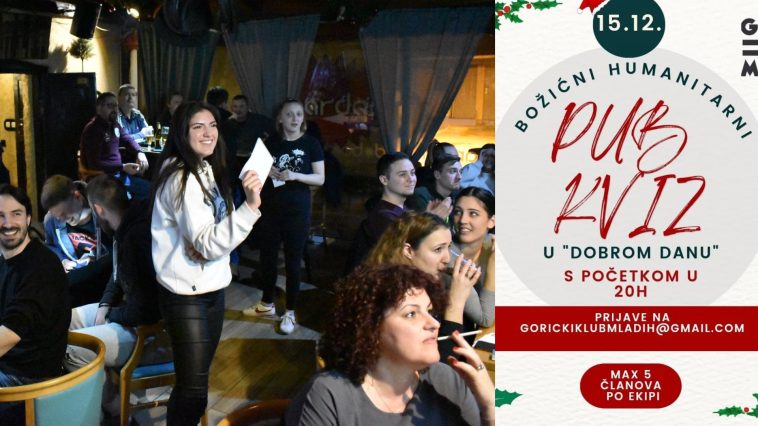 Gorički klub mladih svoja događanja u prosincu nastavlja u humanitarnom tonu. U četvrtak, 15. prosinca, s početkom u 20 sati pripremaju božićni pub kviz u caffe baru Dobar dan. Nakon odlične suradnje s VG Legacyjem i donacije za prvu socijalnu trgovinu ‘Robin Food’, ovog puta snage su udružili s Udrugom Turopoljsko srce koji će ovog tjedna imati dvodnevnu humanitarnu manifestaciju.