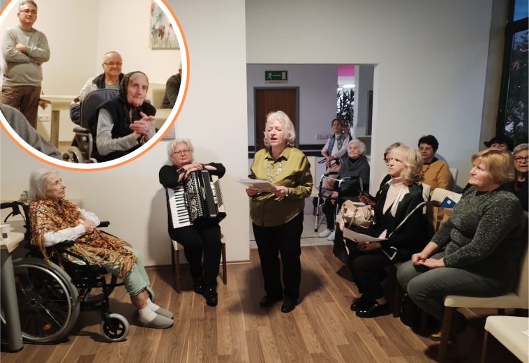 Glazbeni ugođaj osigurala je Snježana Špehar uz podršku članica Vokalnog ansambla KUD-a “Mičevec”, dok su stihovi prigodne poezije Gordane Gerhardinger, Zdenke Mlinar, Nadice Kološa, Marice Mihac i Nevenke Lang dodatno obogatili program. Ovaj poetsko-glazbeni recital bio je više od samog umjetničkog nastupa – pružio je korisnicima doma priliku za povezivanje, uživanje i zaboravljanje svakodnevnih briga.
